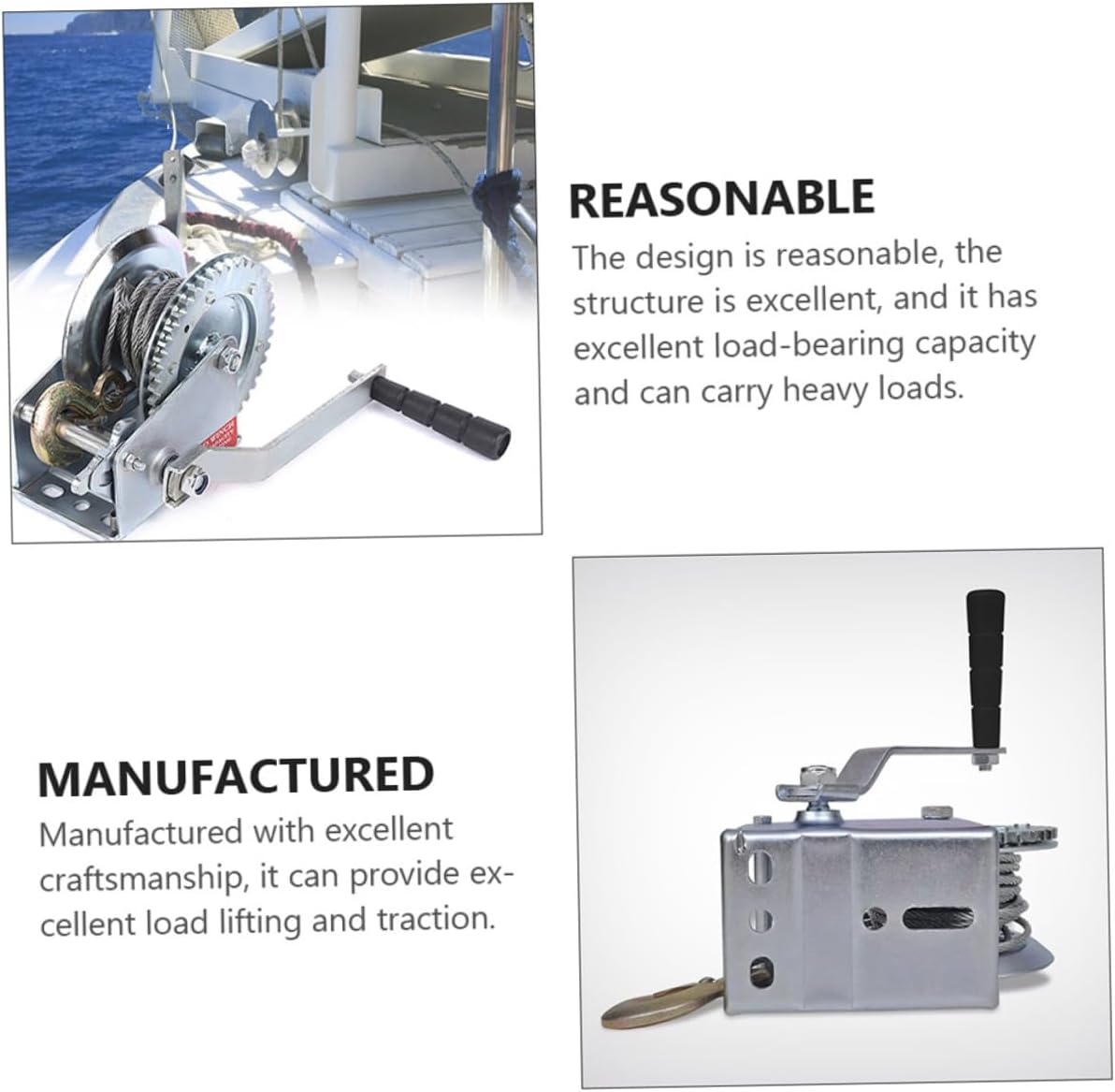 Package Include 1 x hand winch 1 x steel wire rope (10m) Features -Gear ratio: 4.1:1 Boat Towing Winch. -Breaking strength: about 1500kg truck winch. -Wire rope diameter: about 4 mm/0.16 inch towing towing winch. -Color: Silver. - Size: 25.00X19.00X15.00cm/9.82X7.47X5.89in -Product Info:Hand winch with steel cable -Cable length: about 10m/32.8ft Winch with Wire Rope. -Material: Steel. -Pull force: 1500 kg crank winch. -Easy to use, simple to operate, not easy to break, and safer to use hand crank strap gear winch. -Manufactured with excellent craftsmanship, it can provide excellent load lifting and traction winch. -The design is scientific, the structure is excellent, and it has excellent carrying capacity and can carry heavy objects boat hand winch. -Professional and practical, can be widely used in boats, trailers, etc., will be your good choice of towing tools small winch. -It is made of steel material, strong and durable, not easy to deform or damage.Goods Descriptionmanual hand winch This is a great manual winch that will serve you well.boat anchor winch Are you looking for a professional, practical and manual winch? Our products will be your good choice.trailer winch rope Made of craftsmanship and steel, it has excellent durability and practicality.crank winch Reasonable design, convenient and practical, safer and more labor-saving